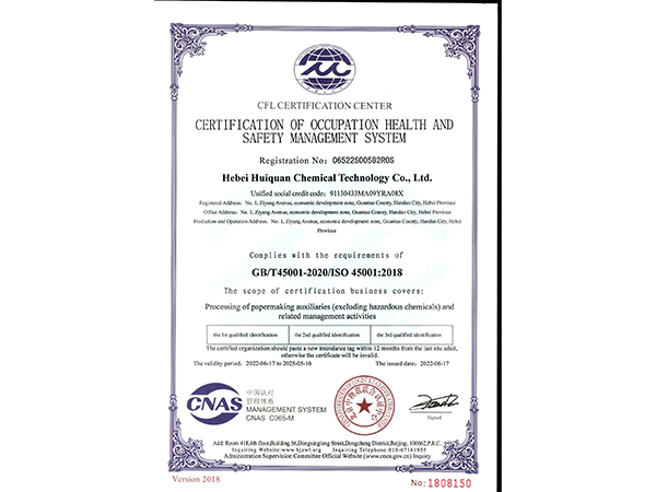 職業(yè)健康安全管理體系認(rèn)證證書(英文版)